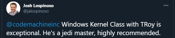 CodeMachine has been involved in Windows internals, development, and debugging since the inception of Windows NT in 1992 and has delivered related courses all over the world for more than 15 years. CodeMachine instructors bring unmatched historical perspective to design and architectural questions that come up during the training. Moreover, CodeMachine instructors actively work on Windows security software on a regular basis enabling them to convey real-life experiences to attendees. This depth of technical knowledge and architectural insights sets CodeMachine courses apart from other training providers.